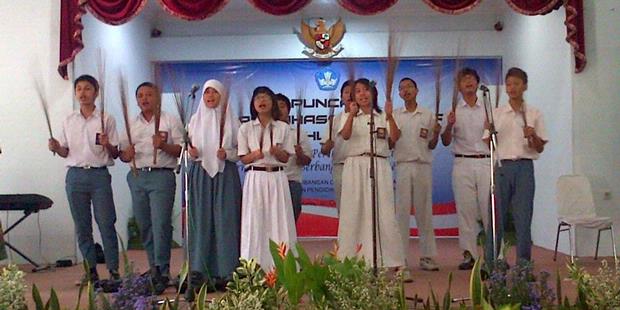 "Kita dari bangsa yang sama, dari kemanusiaan yang satu, maka jangan bergumam dengan dentuman, jangan berkata lewat batu, jangan sampaikan lewat pentungan, utarakanlah dengan mawar, dengan bijak, tingkah lembut, merdu..." Begitu bunyi kutipan yang disampaikan bersama siswa SMAN 70 dan SMAN 6.